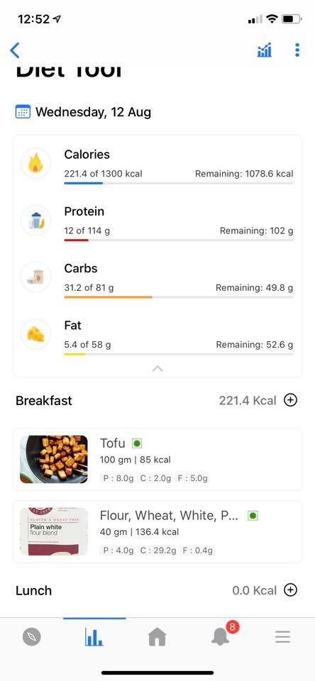 • Tofu – 50g  — 72 kcals
