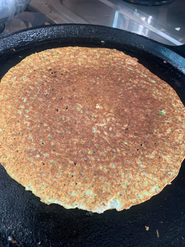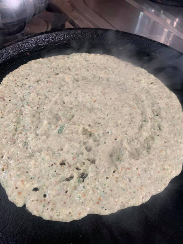 Grind everything adding little water to the dosa/pancake consistency. Cook one side with lid on and enjoy with cilantro chutney!